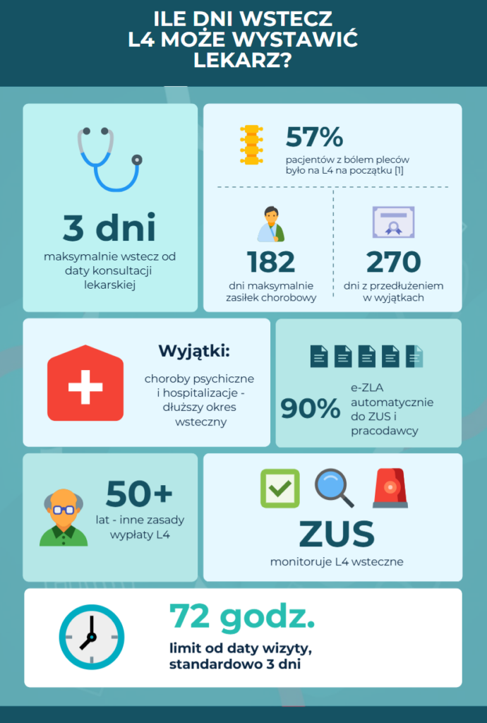 Należy zwrócić uwagę na fakt, że wynagrodzenie chorobowe obejmuje także dni wolne od pracy. Wprowadzenie wstecznego L4 nie wpływa na to prawo. Dodatkowo, osoby powyżej 50. roku życia mogą być objęte innymi zasadami co do okresu wypłaty L4, co może mieć znaczenie dla wysokości świadczenia.