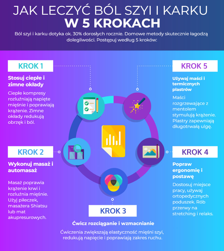 Warto także rozważyć inne terapie, takie jak igłoterapia, oraz wprowadzić regularne ćwiczenia rozciągające. Tego typu działania mogą znacząco poprawić elastyczność ciała i złagodzić dolegliwości bólowe. Systematyczne korzystanie z masażu przyczynia się do długoterminowego wzrostu komfortu życia osób zmagających się z problemami szyi i karku.