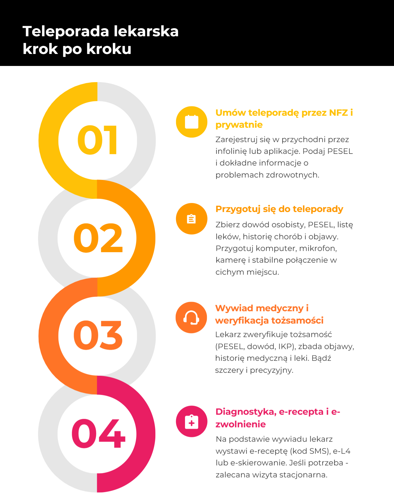 Rozwój technologii sprawił, że telemedycyna stała się dostępna dla wszystkich, umożliwiając szybki kontakt z lekarzem oraz monitoring zdrowia. Teleporady mogą prowadzić do wystawienia: