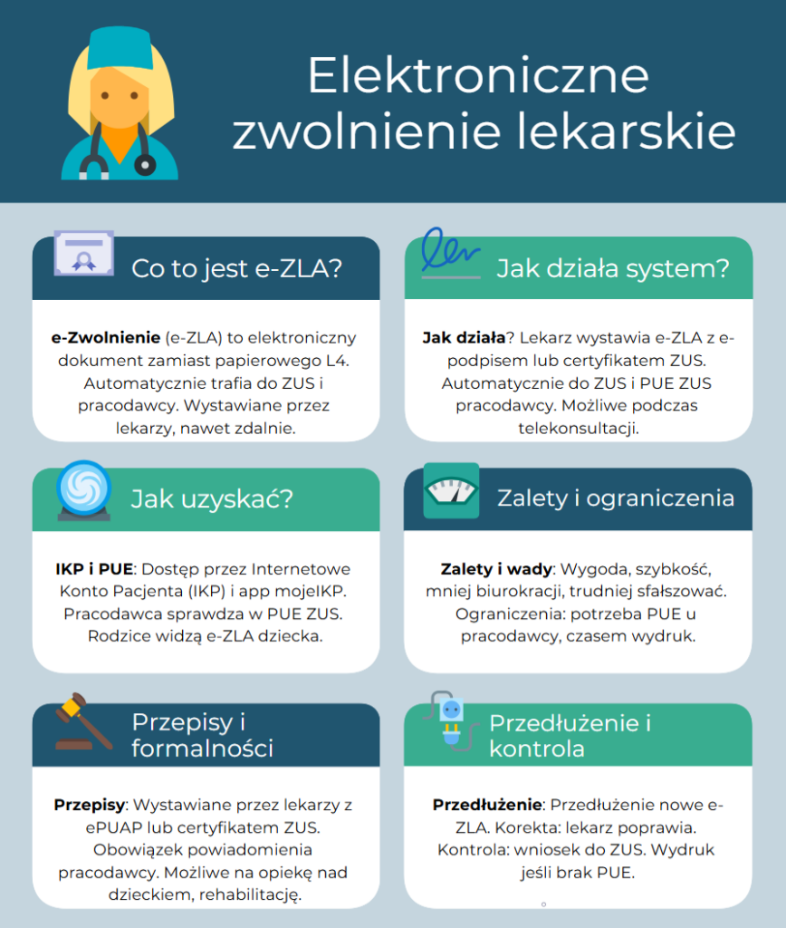 Jeżeli pracodawca nie dysponuje profilem na Platformie Usług Elektronicznych (PUE), pacjent ma możliwość otrzymania papierowego wydruku swojego e-ZLA. Jest to szczególnie istotne dla tych, którzy mają trudności z korzystaniem z systemów elektronicznych. Kontrola zwolnień L4 ma na celu zapewnienie, że świadczenia chorobowe i opiekuńcze są przyznawane zgodnie z obowiązującymi przepisami prawa.