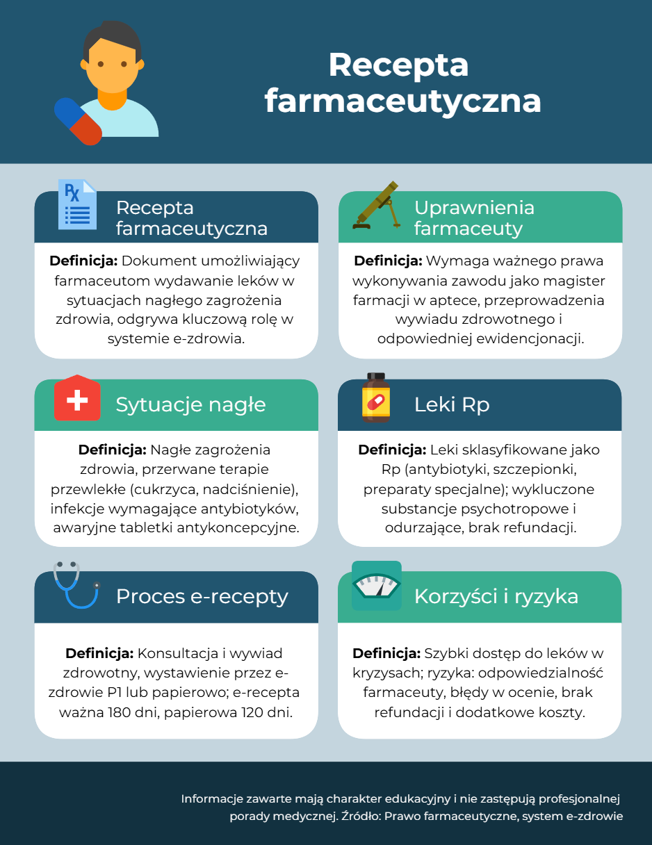 Recepta farmaceutyczna to dokument, dzięki któremu można nabyć leki sklasyfikowane jako Rp, co oznacza, że są wydawane jedynie na receptę. Do tej kategorii należą między innymi: